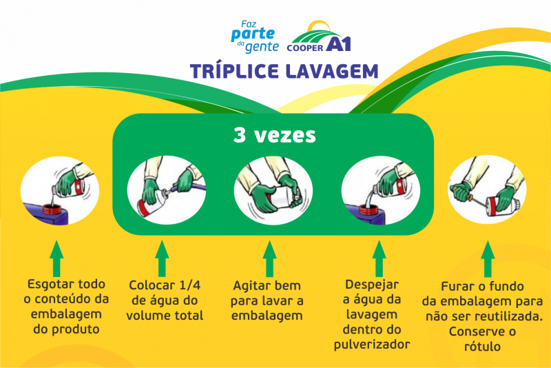 O engenheiro agrônomo da Cooper A1, Celiomar Jose Crestani, da unidade de Itapiranga, afirma que, para receber as embalagens e atender a legislação, alguns passos devem ser seguidos pelos produtores, afim de evitar complicações. “As embalagens devem ser tríplice lavadas, processo de enxaguar três vezes a embalagem vazia”, explica. Critérios que devem ser seguidos: