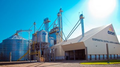 A Cooperativa Central Aurora Alimentos inaugurou, nessa semana, a unidade armazenadora de grãos, em São Gabriel do Oeste (MS). A obra, com investimentos da ordem de 21,5 milhões de reais, está localizada no quilômetro 609 da rodovia federal BR-163 e amplia a capacidade de armazenamento de grãos na região central do Brasil com a construção de quatro silos (de um conjunto de oito projetados).