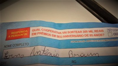 O esperado sorteio do primeiro carro 0 Km da “Promoção 300 mil em Prêmios” foi realizando manhã de sábado, 28/10. O ganhador é Erno Antonio Braun, da Linha Ypê Popi, interior de Itapiranga, SC. O cupom foi validado pela Cooper A1 após a confirmação do preenchimento correto de todos os campos, inclusive a resposta para a pergunta “Qual cooperativa vai sortear 300 mil em prêmios em seu aniversário de 85 anos? ” O sorteio envolveu os cupons de todas as 18 unidades da Cooper A1, em Santa Catarina e Rio Grande do Sul.