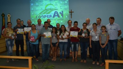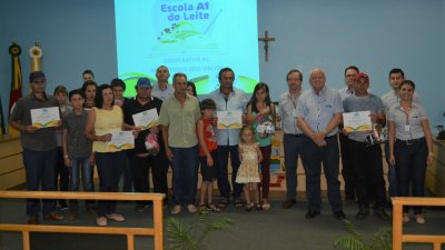 Participaram do programa famílias de Alpestre, Planalto, Pinheirinho do Vale, Redentora, Vicente Dutra e Braga. A médica veterinária e responsável pelo programa Escola A1 do Leire, no Rio Grande do Sul, Jaqueline Gaspary Alves, coordenou e auxiliou os produtores para alcançar o crescimento e desenvolver competências na atividade, como comentou a formanda Lurdes Manica: O programa é um projeto de formação do quadro social, lançado pela Cooperativa A1 em 2015. O projeto chamou os cooperados de bovinocultura de leite para participarem de um curso modular, projeto esse, idealizado e desenvolvido pela equipe técnica da atividade de leite da cooperativa. A turma que concluiu a fase I do programa, é a terceira a se formar no estado. Os produtores que finalizaram o curso participaram de nove módulos, e desenvolveram suas propriedades através das técnicas recebidas pelo Escola A1. Oportunidade de desenvolvimento Jaqueline Alves, é médica veterinária da Cooperativa Central Aurora Alimentos, e atende os cooperados da Cooperativa A1 no Rio Grande do Sul. Para ela, a atividade funciona sim, através da assistência técnica de qualidade, mas também com o empenho e dedicação dos produtores. “Como cooperativa, procuramos fazer com que as pessoas tenham renda em suas propriedades, e temos vários projetos dentro da atividade leiteira para auxiliá-los. A gente pede que vocês não parem por aí, continuem estudando e dando sequência para a atividade”, reforçou o gerente da atividade de leite, Gilnei Caumo. O projeto é uma aposta da Cooper A1 para que seus cooperados possam investir e gerir a propriedade com mais segurança, o estudo proporciona isso. Selvino Giesel, gerente da política leiteira da Aurora, comentou sobre a oportunidade de especialização: “Na vinda eu escutei uma música que dizia que um produtor é tão doutor quanto um médico, vocês estão dando um passo para administrar a atividade de vocês, se especializando, isso que importa”. Selvino comentou ainda sobre o projeto de melhoramento genético, parceria entre a Cooper A1 e a Aurora. “Fizemos esse investimento, e hoje temos um projeto se desenvolvendo, é o único no Brasil, é algo que a gente faz, e ninguém mais faz pelos seus produtores de leite”. E para finalizar, o presidente da Cooperativa A1, engenheiro agrônomo Elio Casarin comentou sobre a assistência técnica: “Eu valorizo bastante a assistência técnica, nós como cooperativa precisamos desenvolver cada vez mais os nossos agricultores, o objetivo de uma cooperativa é ver crescer e se desenvolver junto dos nossos associados”. Turmas em andamento Além da turma que concluiu o curso, em Santa Catarina mais aproximadamente 60 famílias estão com o Escola A1 do Leite em andamento. São 10 turmas no estado, que cursam as fases I e II do programa, e irão se formar em junho deste ano.Eduarda Fernandes dos Santos
