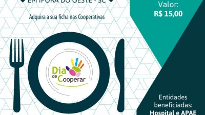 Apae e hospital serão beneficiados - A Cooper A1 também é uma das cooperativas que vai realizar um almoço beneficente em Caibi, SC. Toda a arrecadação do evento será revertida à Apae e Associação Hospitalar de Caibi. O almoço beneficente será neste sábado, dia 29/07, e a iniciativa envolve, ainda, Sicoob e Sicredi.