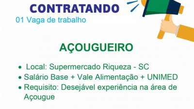 Tem vaga de emprego na unidade de Riqueza, confere aí: