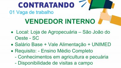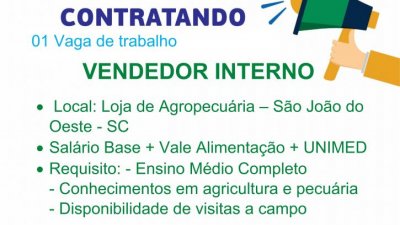 VAGA DE EMPREGO PARA SÃO JOÃO DO OESTE