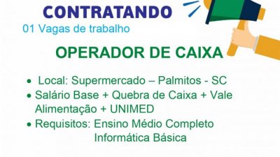 VAGA DE EMPREGO PARA UNIDADE DE PALMITOS