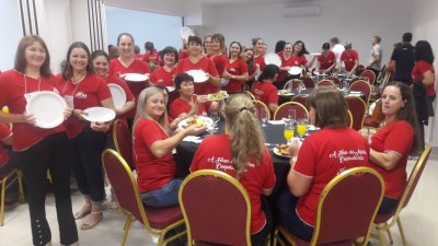 Durante a última quinta e sexta-feira, cerca de 75 mulheres cooperadas, esposas ou filhas de cooperados da Cooper A1 participaram do 16° Encontro Estadual de Mulheres Cooperativistas, em Florianópolis, SC. Na oportunidade, elas aprimoraram seus conhecimentos com os temas: Felicidade, bem-estar & qualidade de vida”. “Engajamento e empoderamento – a alma do cooperativismo”, “Saúde e qualidade de vida”, “Propósito, performance e felicidade” e “A arte de encartar-se e encantar as pessoas”. O encontro estadual é realizado através do Serviço Nacional de Aprendizagem do Cooperativismo (SESCOOP/SC), e em 2019 reuniu mais de 550 participantes.