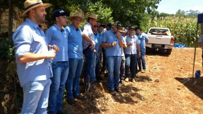 Acontece um dia de campo em Palmitos, na propriedade da família Vacarin, para avaliação de cultivares de milho.