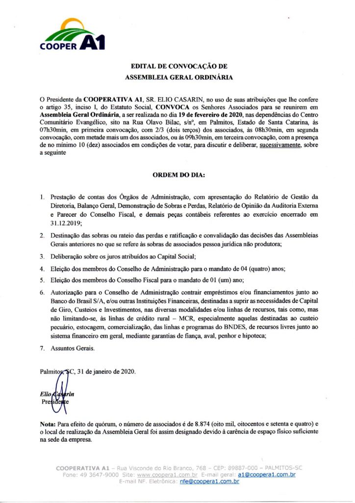 EDITAL DE CONVOCAÇÃO ASSEMBLEIA GERAL ORDINÁRIA