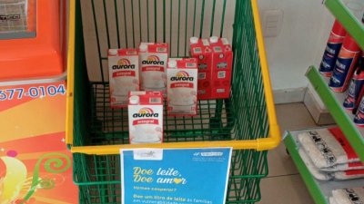 Nos dias 29, 30/06 e 1º/07 e 06, 07, 08/07 somente, haverá uma coparticipação da Cooper A1 e Aurora Alimentos na campanha. Sendo que nestes dias, a cada 12 litros de leite vendidos a 1 cliente, ou seja, uma caixa fechada, as cooperativas acima, doarão 1 litro de leite para a ação. As unidades, deverão fazer o controle da doação.