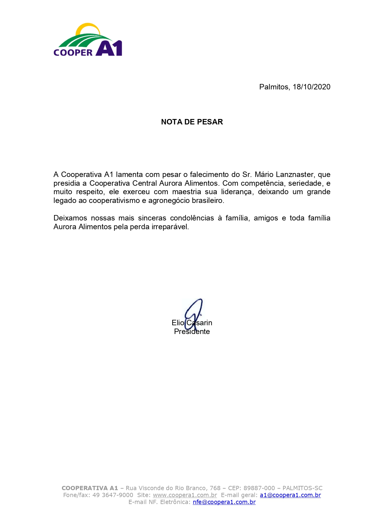 [COOPER A1] Nota de pesar