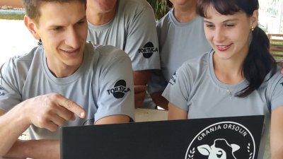 “ - Eu saí de casa com 13 anos para cursar o ensino técnico em agropecuária, rumando de Palmitos (extremo oeste de SC) para Camboriú (litoral catarinense) pensando em ter uma base de estudos para administrar a propriedade, mas ao me formar, vi que eu ainda tinha muito a conhecer e estudar para ter a experiência necessária para administrar uma propriedade. Em um dos meus estágios extracurriculares no curso de agronomia, acompanhei o dia-a-dia de uma propriedade referência na produção de leite em Santa Catarina, foi quando fortaleci o sonho da sucessão familiar. Porém, mesmo com esse sonho eu quis conhecer um pouco melhor a produção agrícola no Brasil e segui para o ramo de produção de sementes de milho, trabalhando em uma multinacional neste ramo, até que meu pai, tendo dificuldades em conseguir mão-de-obra, pensou em vender as vacas leiteiras e investir apenas em gado nelore. Foi então que eu e minha noiva Simone voltamos para casa para dar continuidade e ampliar a atividade leiteira.” Comenta o Técnico agrícola e Engº Agrônomo Jhonatan Orsolin.”