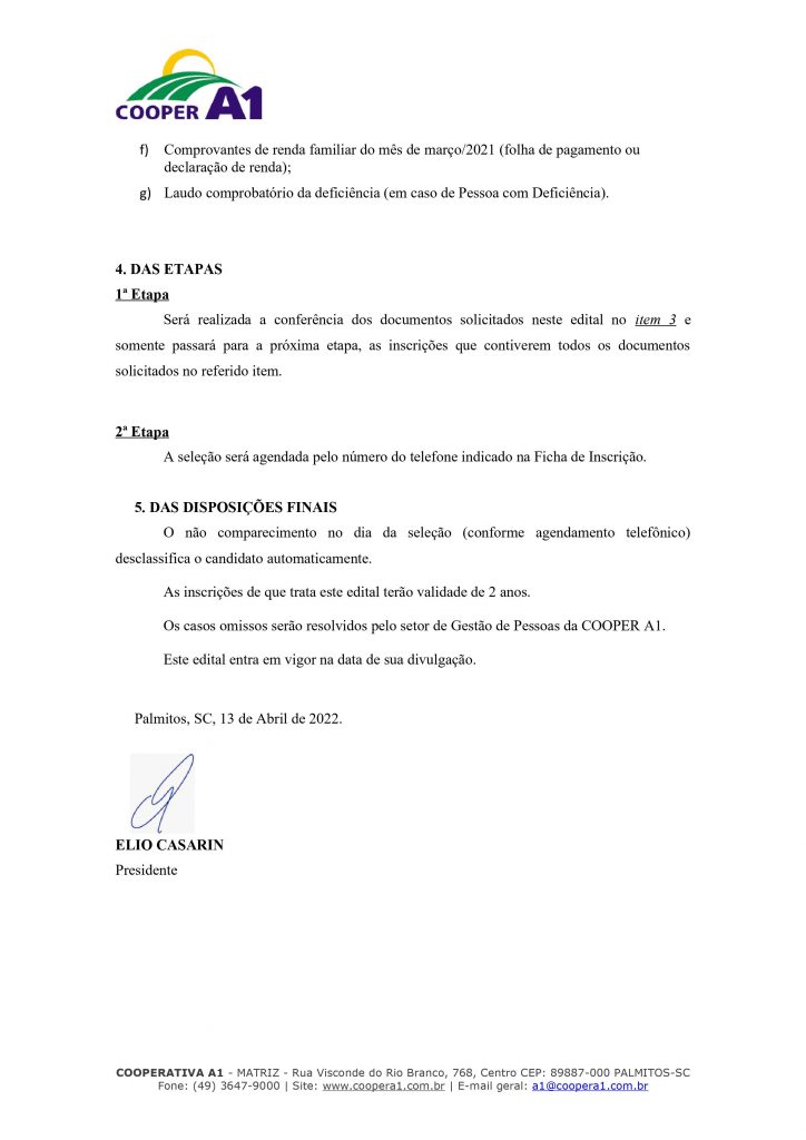 Razão Social: Cooperativa A1 | CNPJ/MF: 03.470.626/0001-50