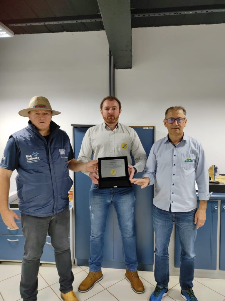 O reconhecimento foi simbolizado em uma placa entregue pelo representante da JF Máquinas ao gerente das lojas agropecuárias, Mário Grisotti e ao coordenador de máquinas e implementos da cooperativa, Gilberto Maihack. A placa tem os dizeres “Uma parceira sólida como esta, se constrói com trabalho sério, relações transparentes e atitudes éticas”.