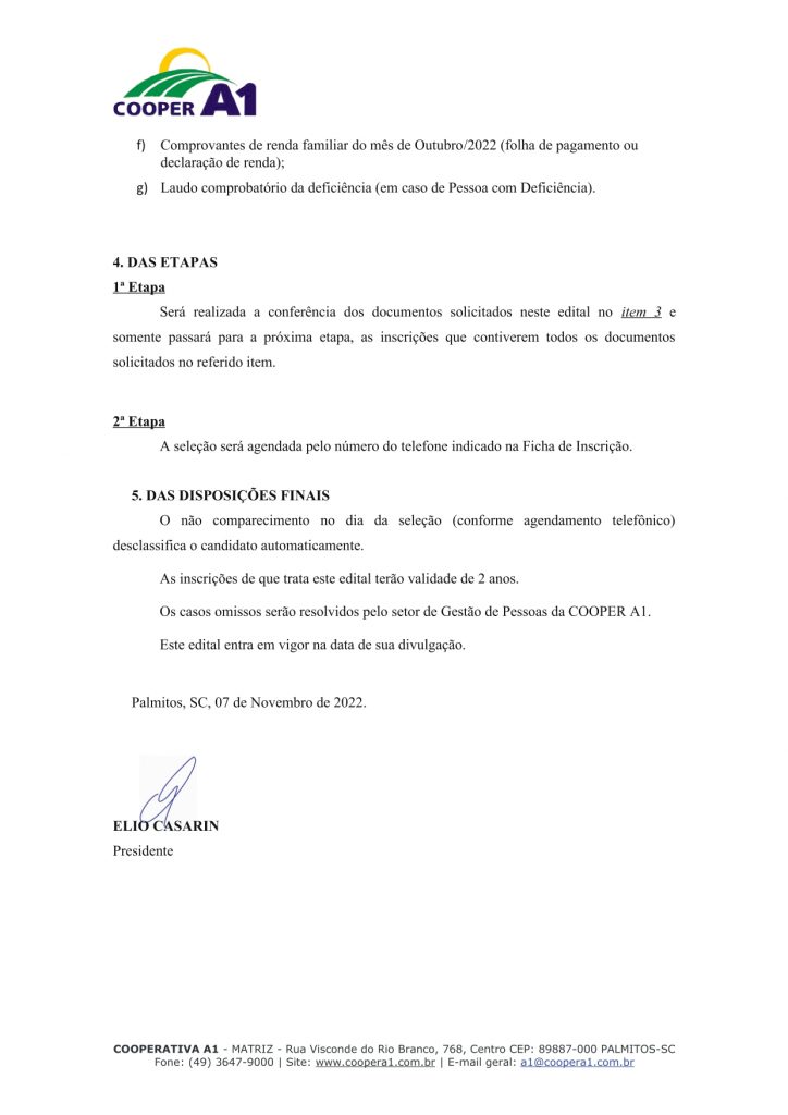 Razão Social: Cooperativa A1 | CNPJ/MF: 03.470.626/0001-50