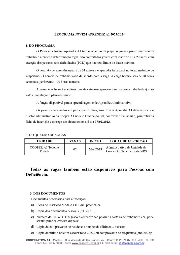 EDITAL JOVEM APRENDIZ TENENTE PORTELA/RS
