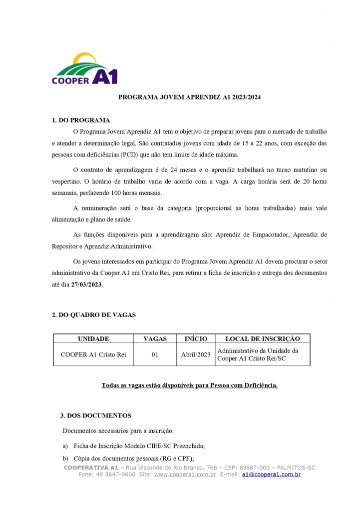 EDITAL: Jovem Aprendiz Cristo Rei/SC