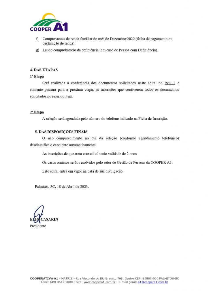Razão Social: Cooperativa A1 | CNPJ/MF: 03.470.626/0001-50