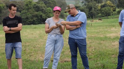 O objetivo da tarde foi trazer diversos pontos sobre o planejamento forrageiro aplicado na propriedade Lohmann. Entre eles, as pastagens utilizadas, a realização da adubação, os herbicidas necessários e as vantagens do sistema de piqueteamento.