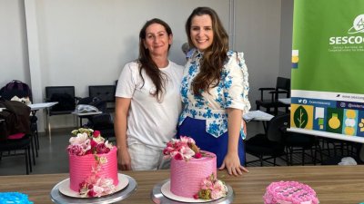Julia Grisang colaboradora de Riqueza, SC, conta que foi um curso incrível e muito enriquecedor. “Cada aula agregou ao nosso aprendizado e nos deixou com mais confiança na elaboração dos bolos.”